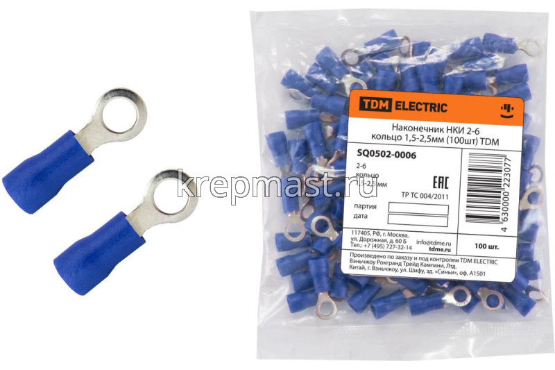 Наконечник кольцо 2-6 1,5-2,5мм2 изолированный в интернет-магазине «Мастер Крепежа» по цене 10 руб. Более 9 наименований товаров в наличии в категории Наконечники с кольцом. Купить наконечник кольцо 2-6 1,5-2,5мм2 изолированный в Нижнекамске выгодно Вы можете on-line на нашем сайте, или отправив заявку по почте, а также по телефону или в пункте выдачи компании г. Казань, ул. Татарстан, 9, магазин "Мастер Крепежа". Доставка по Республике Татарстан и другие регионы РФ.