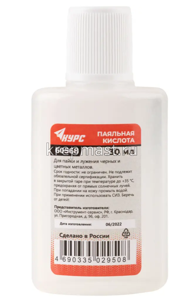 Кислота паяльная 30мл (высокоактивный флюс на основе хлористых солей цинка) в интернет-магазине «Мастер Крепежа» по цене 86 руб. Более 19 наименований товаров в наличии в категории Наборы для пайки. Купить кислота паяльная 30мл (высокоактивный флюс на основе хлористых солей цинка) в Нижнекамске выгодно Вы можете on-line на нашем сайте, или отправив заявку по почте, а также по телефону или в пункте выдачи компании г. Казань, ул. Татарстан, 9, магазин "Мастер Крепежа". Доставка по Республике Татарстан и другие регионы РФ.