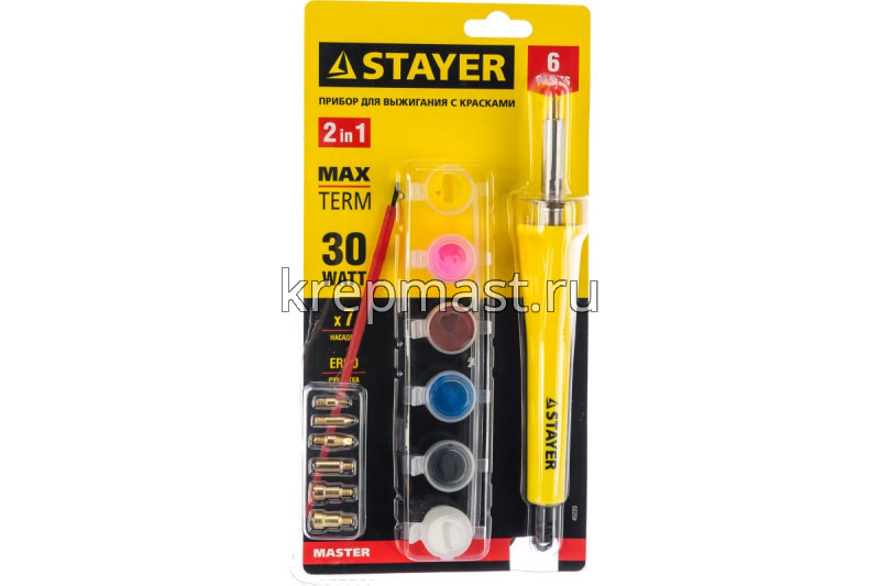 Прибор для выжигания STAYER с наб.насадок в интернет-магазине «Мастер Крепежа» по цене 1496 руб. Более 10 наименований товаров в наличии в категории Паяльники. Купить прибор для выжигания stayer с наб.насадок в Нижнекамске выгодно Вы можете on-line на нашем сайте, или отправив заявку по почте, а также по телефону или в пункте выдачи компании г. Казань, ул. Татарстан, 9, магазин "Мастер Крепежа". Доставка по Республике Татарстан и другие регионы РФ.