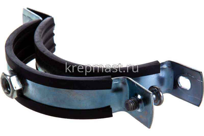 Хомут сантехнический с гайкой М8 74-80 мм представляет собой две металлические пластины, соединенные по краям регулировочными винтами м6 и резиновым уплотнителем. К хомуту приварена гайка м6 с метрической резьбой. Диаметр обжима трубы составляет от 74 до 80 мм. Изготавливается из оцинкованной стали толщиной 1.5 мм.