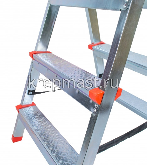 Стремянка-лестница стальная 2х сторонняя FIT 3 ступени подходит для работ на небольшой высоте. Имеет широкие рифленые ступени для безопасного подъема и спуска. Опорные ножки оснащены пластиковыми вставками для лучшей устойчивости на поверхности. Страховочные ремни удерживают стремянку в рабочем положении.
