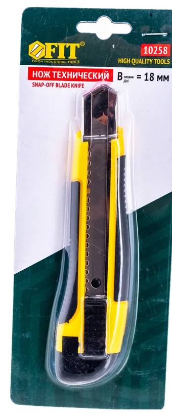 Нож 18мм УСПЕХ / FIT ПРОФИ усиленный, 2х сторонняя автофиксация применяется для разрезания различных материалов: линолеума, ковровых покрытий, гипсолитовых плит, гипсокартона, кровельных материалов, пластика, дерева и т.д.