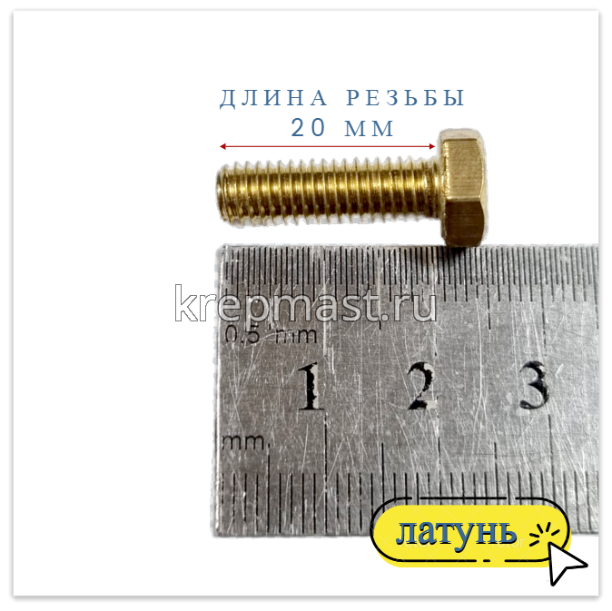 Болт 6х20 DIN 933 латунь в интернет-магазине «Мастер Крепежа» по цене 50 руб. Более 26 наименований товаров в наличии в категории Болты латунные DIN 933. Купить болт 6х20 din 933 латунь в Нижнекамске выгодно Вы можете on-line на нашем сайте, или отправив заявку по почте, а также по телефону или в пункте выдачи компании г. Казань, ул. Татарстан, 9, магазин "Мастер Крепежа". Доставка по Республике Татарстан и другие регионы РФ.