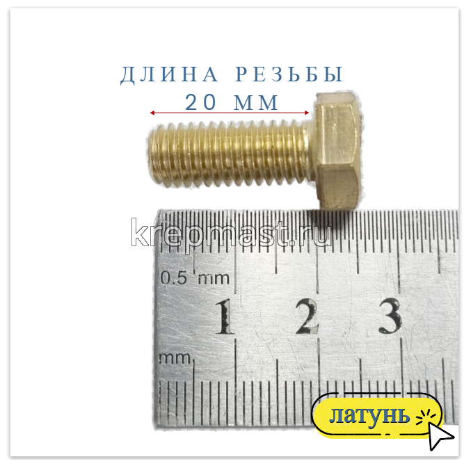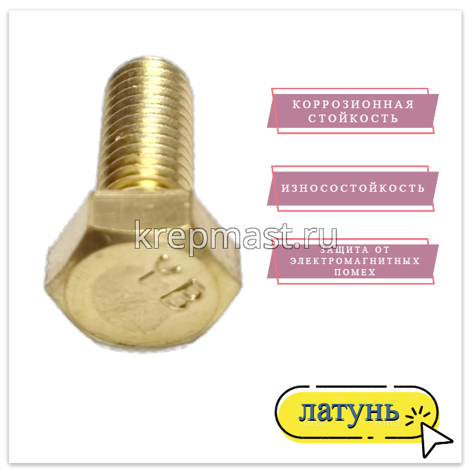 Болт 8х20 DIN 933 латунь в интернет-магазине «Мастер Крепежа» по цене 99 руб. Более 26 наименований товаров в наличии в категории Болты латунные DIN 933. Купить болт 8х20 din 933 латунь в Нижнекамске выгодно Вы можете on-line на нашем сайте, или отправив заявку по почте, а также по телефону или в пункте выдачи компании г. Казань, ул. Татарстан, 9, магазин "Мастер Крепежа". Доставка по Республике Татарстан и другие регионы РФ.