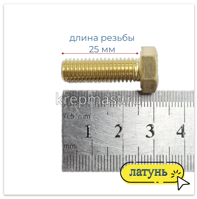 Латунный болт DIN 933 М8 х 25 используется в случае, когда необходимо создать немагнитный узел. Латунный болт М8 применяется в приборостроении, авиации, атомной промышленности. Латунный крепеж стоек к органическим кислотам и углекислым растворам.