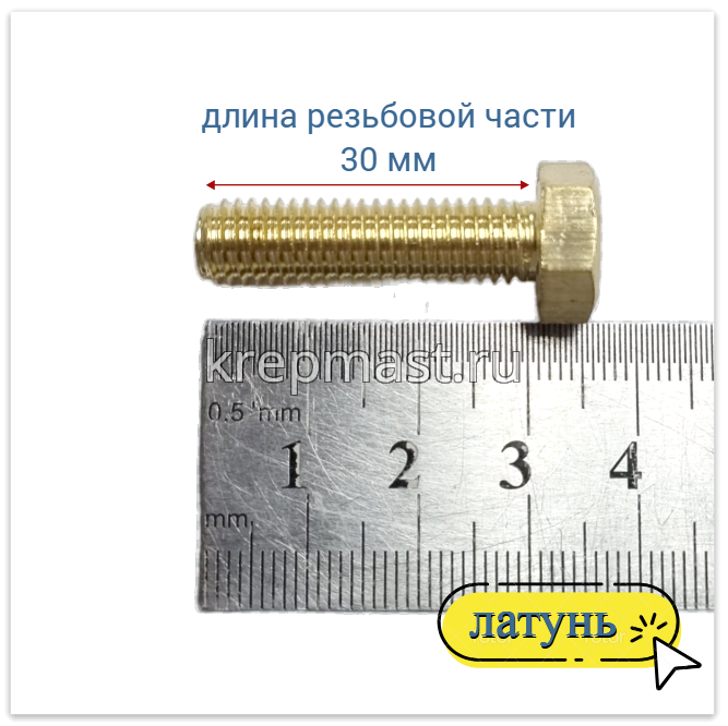 Болт 8х30 DIN 933 латунь в интернет-магазине «Мастер Крепежа» по цене 209 руб. Более 26 наименований товаров в наличии в категории Болты латунные DIN 933. Купить болт 8х30 din 933 латунь в Нижнекамске выгодно Вы можете on-line на нашем сайте, или отправив заявку по почте, а также по телефону или в пункте выдачи компании г. Казань, ул. Татарстан, 9, магазин "Мастер Крепежа". Доставка по Республике Татарстан и другие регионы РФ.