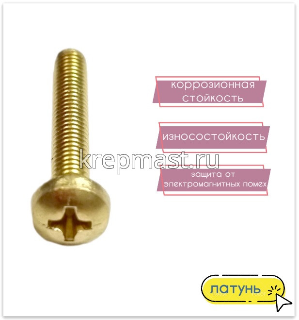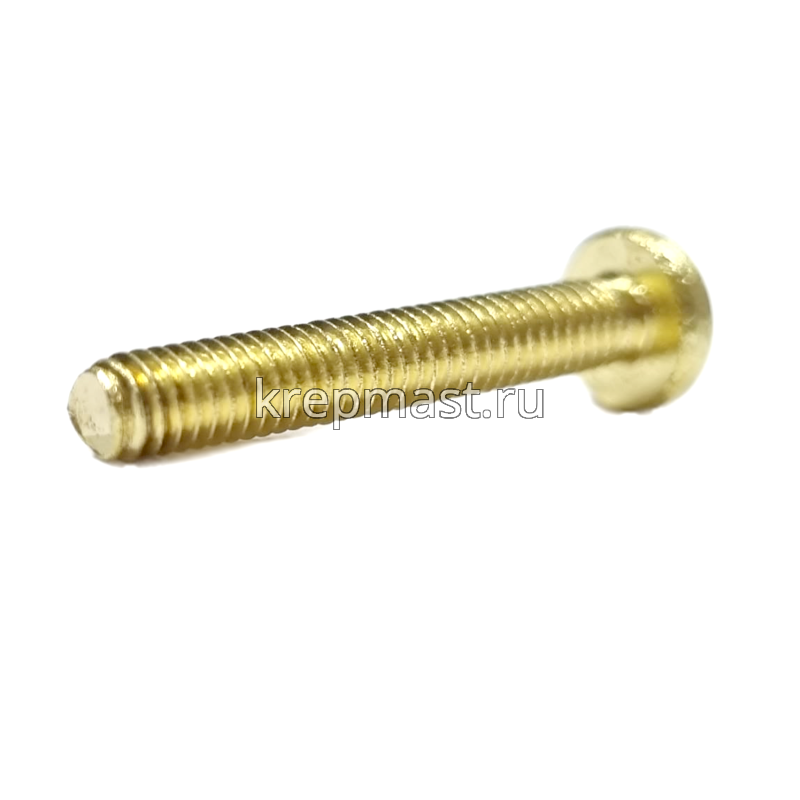 Винт латунный с полукруглой головкой DIN 7985 / ГОСТ 17475 М 4 х 25 используется в случае, когда необходимо создать немагнитный узел. Латунный винт применяется в приборостроении, авиации, атомной промышленности. Латунный крепеж стоек к органическим кислотам и углекислым растворам.