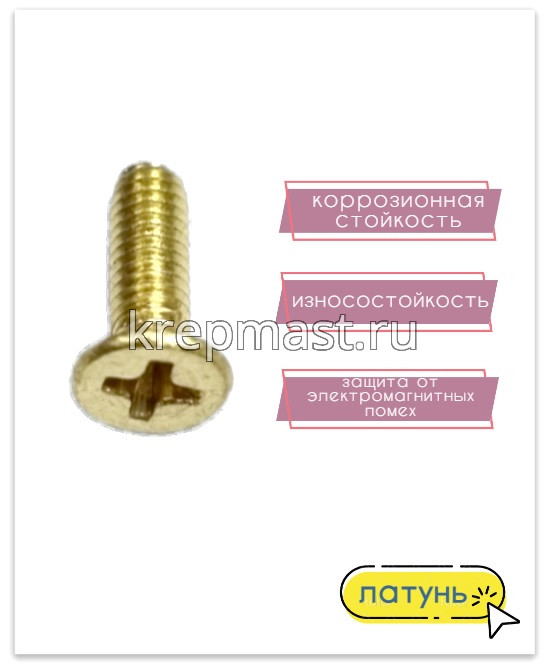 Винт потай 2,5 х 8 DIN 965 латунь в интернет-магазине «Мастер Крепежа» по цене 6 руб. Более 9 наименований товаров в наличии в категории Винты латунные потай DIN 965. Купить винт потай 2,5 х 8 din 965 латунь в Нижнекамске выгодно Вы можете on-line на нашем сайте, или отправив заявку по почте, а также по телефону или в пункте выдачи компании г. Казань, ул. Татарстан, 9, магазин "Мастер Крепежа". Доставка по Республике Татарстан и другие регионы РФ.
