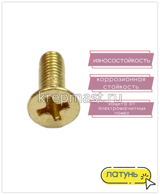 Винт потай 4,0 х12 DIN 965 латунь в Нижнекамске