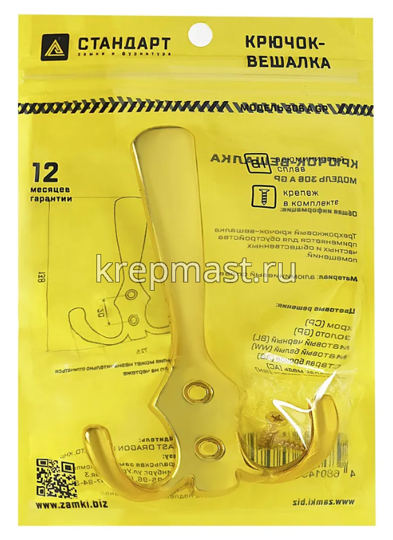 Крючок 306 А GР золото СТАНДАРТ в интернет-магазине «Мастер Крепежа» по цене 132 руб. Более 12 наименований товаров в наличии в категории Крючок-вешалка. Купить крючок 306 а gр золото стандарт в Нижнекамске выгодно Вы можете on-line на нашем сайте, или отправив заявку по почте, а также по телефону или в пункте выдачи компании г. Казань, ул. Татарстан, 9, магазин "Мастер Крепежа". Доставка по Республике Татарстан и другие регионы РФ.