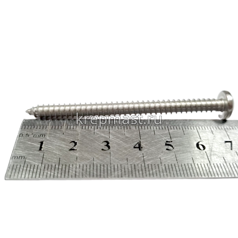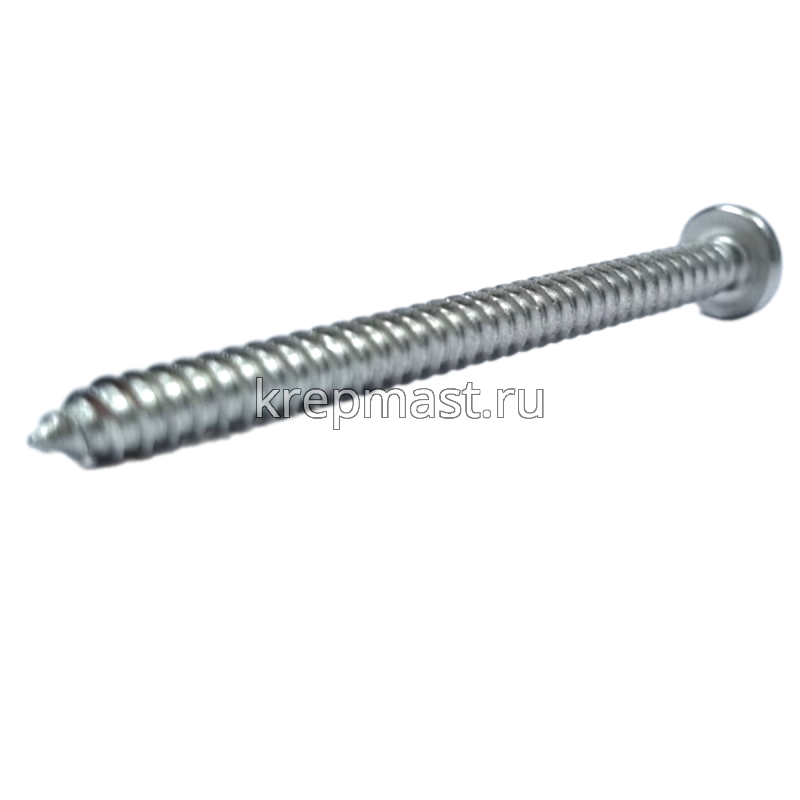 Саморез нержавеющий по металлу с полусферической головкой и острым концом DIN 7981 5.5 x 70 А2 применяется для крепления стальных и других листовых материалов (дерево, фанера) к металлическим и деревянным несущим конструкциям.