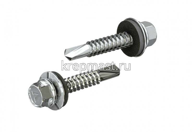 Кровельный саморез с шайбой и резиновой прокладкой EPDM DIN 7504 К 6,3 х 64 по металлу - представляет из себя саморез с шестигранной головкой, фланцем и резиновой прокладкой для эффективного прижатия листового металла к основанию.