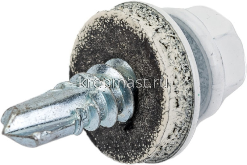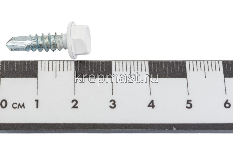Кровельный саморез окрашенный с шайбой и резиновой прокладкой EPDM DIN 7504 5,5 х 19 по металлу RAL 9003 (цвет белый) - представляет из себя саморез с шестигранной головкой, фланцем и резиновой прокладкой для эффективного прижатия листового металла к основанию.