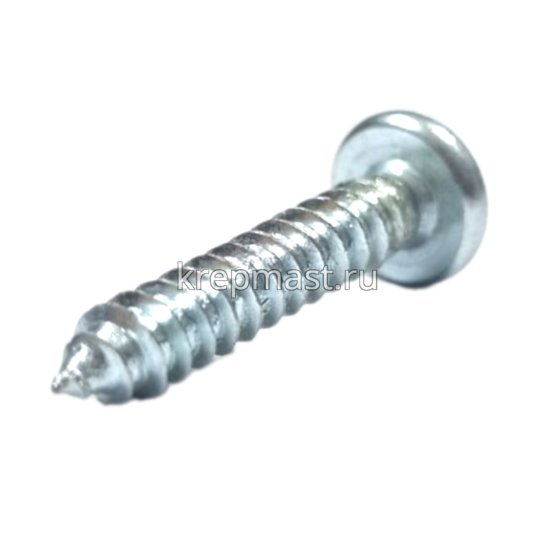 Саморез по металлу с полусферической головкой и острым концом DIN 7981 4.8 x 25 применяется для крепления стальных и других листовых материалов (дерево, фанера) к металлическим и деревянным несущим конструкциям.