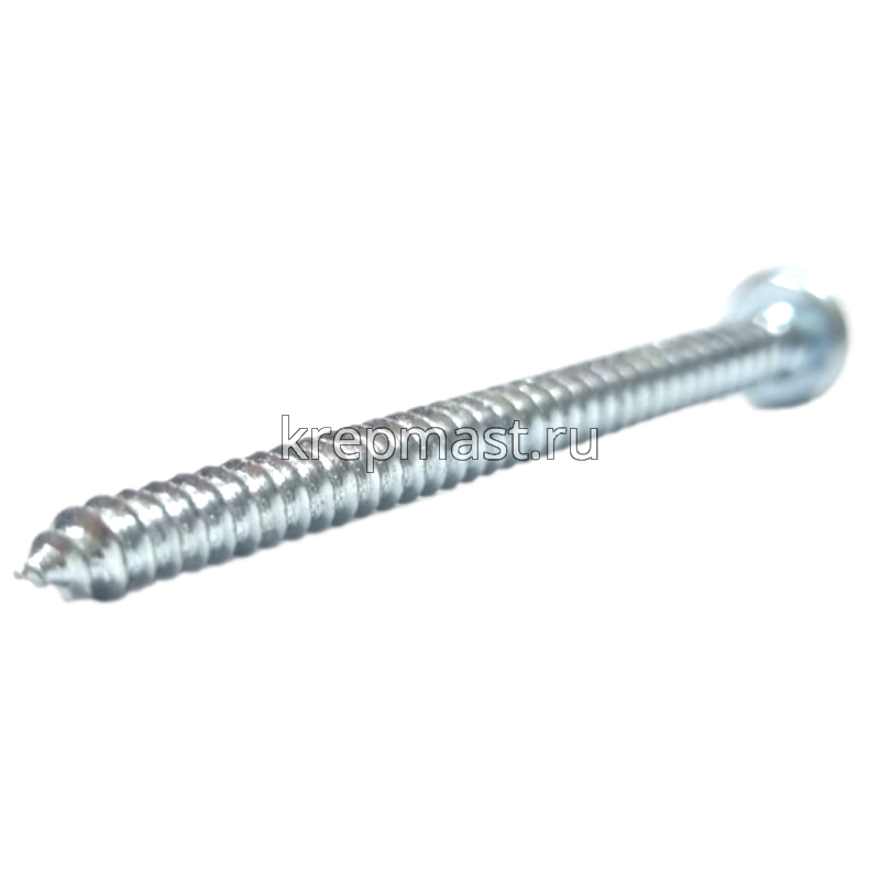 Саморез по металлу с полусферической головкой и острым концом DIN 7981 4.8 x 60 применяется для крепления стальных и других листовых материалов (дерево, фанера) к металлическим и деревянным несущим конструкциям.