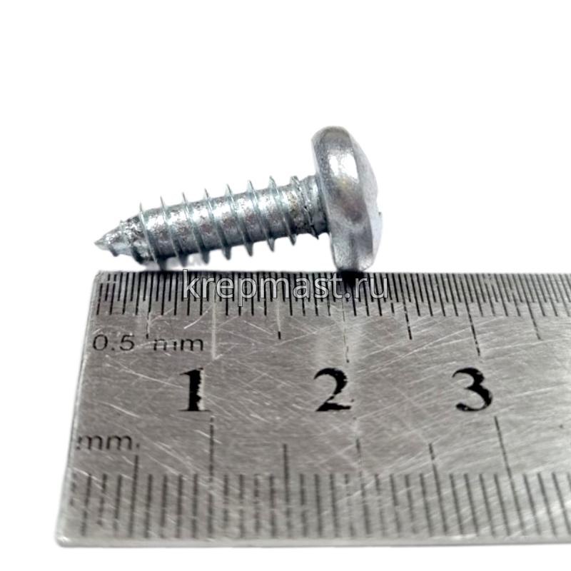 Саморез по металлу с полусферической головкой и острым концом DIN 7981 6.3 x 19 применяется для крепления стальных и других листовых материалов (дерево, фанера) к металлическим и деревянным несущим конструкциям.