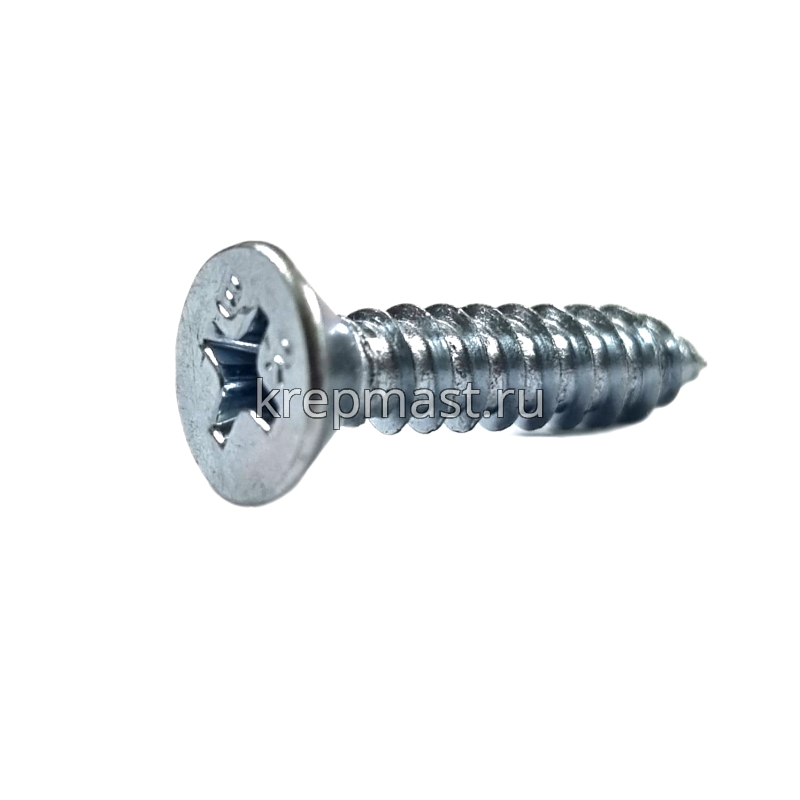 Саморез по металлу с потайной головкой и острым концом DIN 7982 4.2 x 19 применяется для крепления стальных и других листовых материалов (дерево, фанера) к металлическим и деревянным несущим конструкциям.