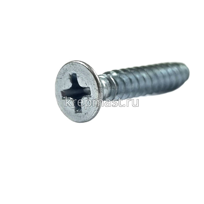 Саморез по металлу с потайной головкой и острым концом DIN 7982 4.2 x 25 применяется для крепления стальных и других листовых материалов (дерево, фанера) к металлическим и деревянным несущим конструкциям.