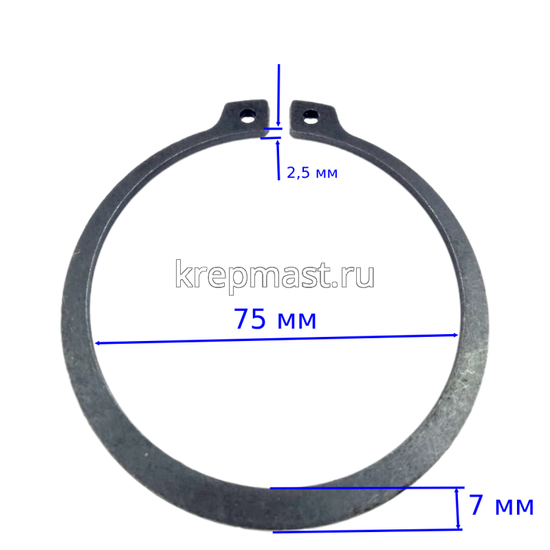 Кольцо пружинное упорное на вал DIN 471 М75 предназначено для фиксации различных деталей на валу, оси или штоке. Стопорная шайба Выполнена в виде разомкнутого кольца с расплющенными кончиками, оснащенными отверстиями.