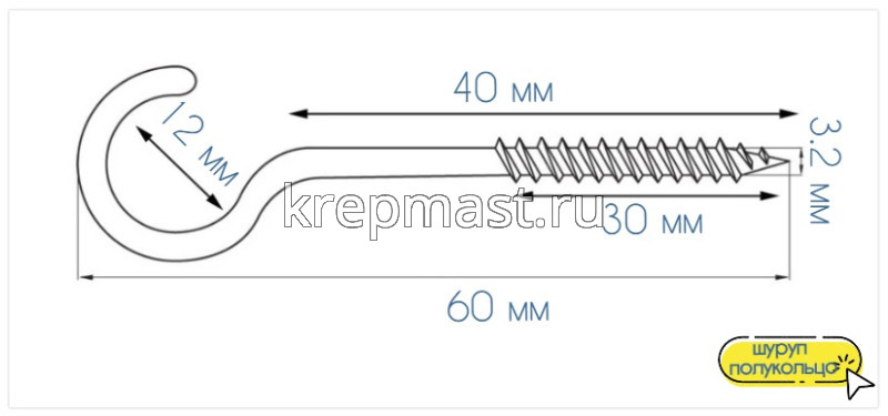 Шуруп-полукольцо 4,0х 65(70)