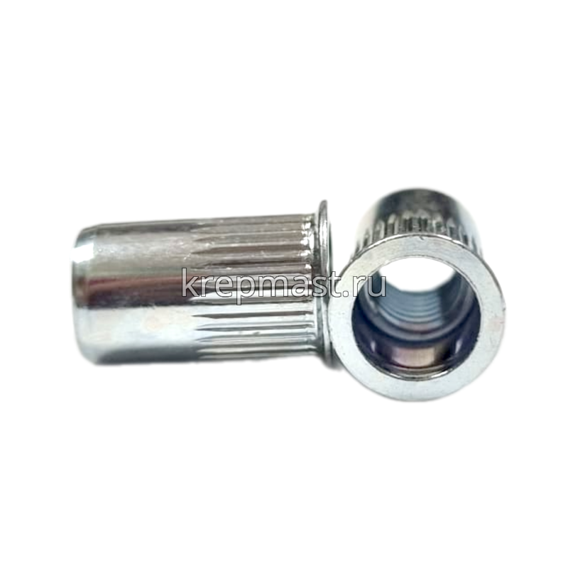 Клепки резьбовые c уменьшенным бортиком М5 изготавливают из прочной и устойчивой к воздействию коррозии оцинкованной стали.
