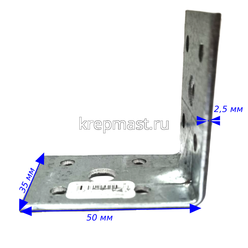 Крепежный усиленный уголок КР 5 50х50х35х2,5 предназначен для крепления деревянных конструкцмй (при монтаже каркасов стропильных систем). Уголок кп5 изготовлен из оцинкованной стали толщиной 2,5 мм. Усиленный уголок кр5 имеет дополнительное ребро жесткости для усиления его несущей способности.