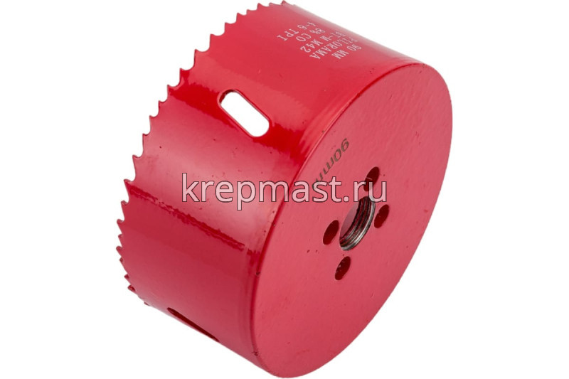 Коронка Bi-Metall 90 мм 8%Co Pilorama предназначена для электрических, аккумуляторных дрелей и сверлильных станков. Применяется для работы с изделиями из нержавеющей стали, алюминия, цветных металлов, дерева и гипсокартона. Режущие зубья изготовлены из биметаллического сплава с добавлением кобальта, что позволяет получить ровное и аккуратное отверстие без сколов и трещин. Переменный шаг зубьев - 4-6 мм.