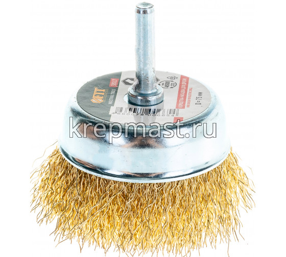 Корщетка-чашка 75 мм является сменным элементом для дрелей. Применяется для зачистки от лака, краски и ржавчины различных поверхностей и изделий. Рабочая часть состоит из стальной волнистой проволоки с латунным покрытием.