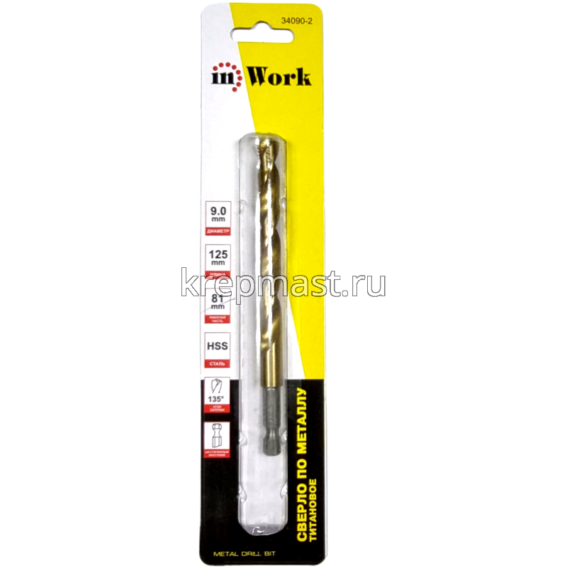 Сверло по металлу 9,0 мм U-образ.хвост.под биту