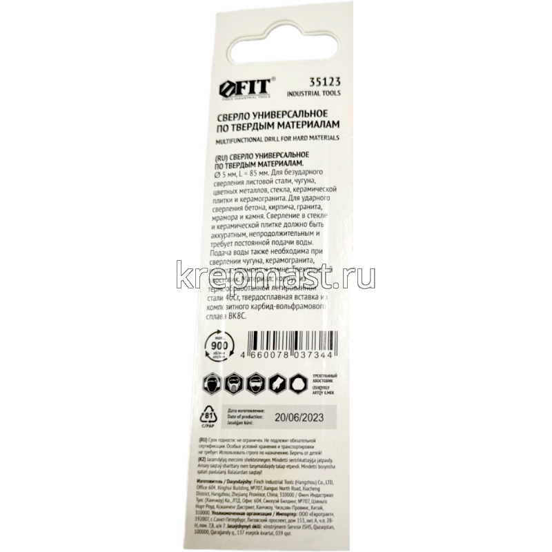 Сверло универсальное 5х85мм (сталь, чугун, цв.мет, стекло, керамогранит) в Нижнекамске