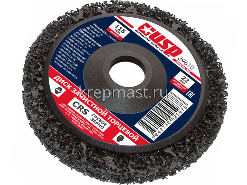 Диск зачистной торцевой 115х22мм Р46 используется для зачистки металлических поверхностей от ржавчины и краски с использованием углошлифовальной машины. Благодаря пористой эластичной структуре рабочая часть не засаливается и меньше нагревается. Материал: ударопрочный корпус, нейлоновое волокно. Абразивный материал: карбид кремния.