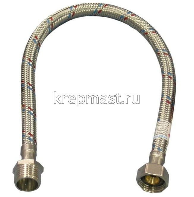 Подводка гибкая для воды 1/2 0,5 м г/ш применяется для присоединения сантехнической арматуры и приборов сантехнического назначения (кранов, унитазов, биде, душевых кабин, смесителей) и подведения воды к агрегатам бытового назначения (водонагревательным приборам, стиральным и посудомоечным машинам и т.д.).