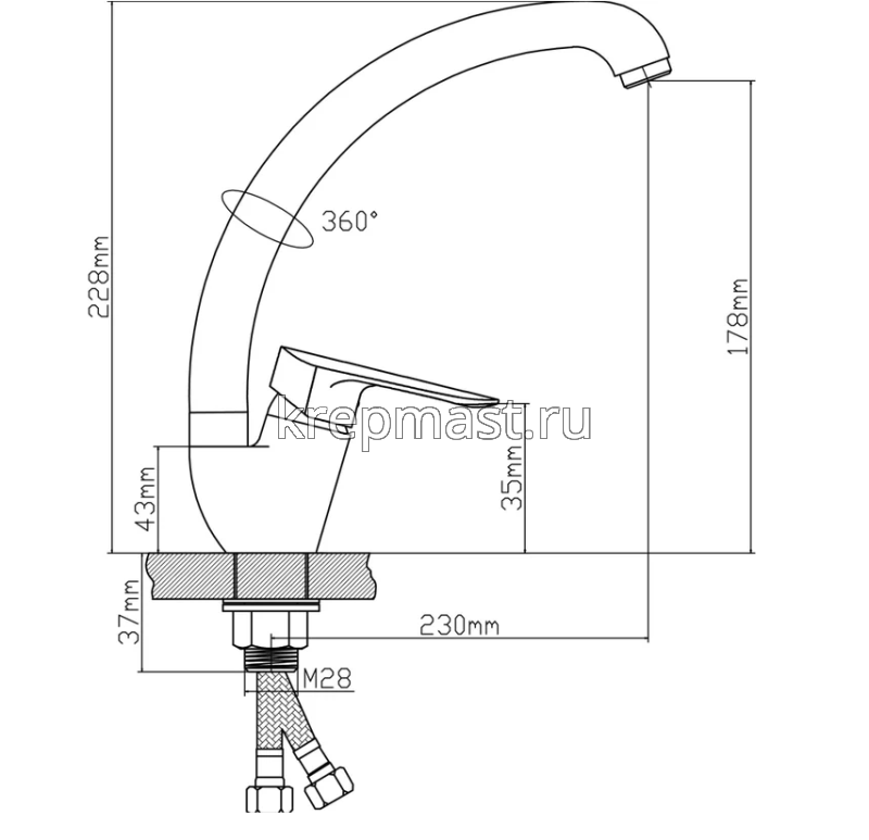 | Высота излива, мм | 178 |