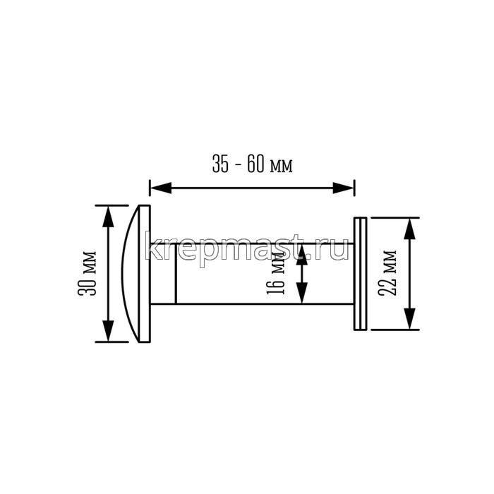 Глазок дверной со шторкой d=16мм L=35-60мм, цинковый сплав