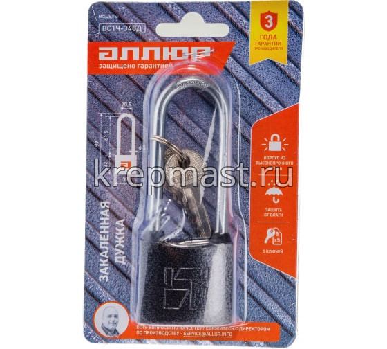 Замок навесной АЛЛЮР ВС1Ч-340Д d.5мм дл.дужка в интернет-магазине «Мастер Крепежа» по цене 250 руб. Более 31 наименований товаров в наличии в категории Замок навесной АЛЛЮР. Купить замок навесной аллюр вс1ч-340д d.5мм дл.дужка в Нижнекамске выгодно Вы можете on-line на нашем сайте, или отправив заявку по почте, а также по телефону или в пункте выдачи компании г. Казань, ул. Татарстан, 9, магазин "Мастер Крепежа". Доставка по Республике Татарстан и другие регионы РФ.