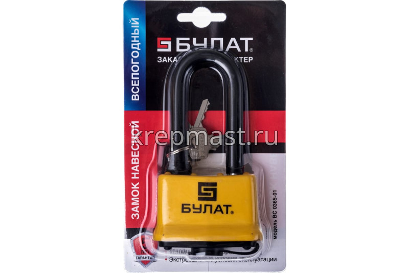 Замок навесной БУЛАТ ВС 0365-01 водостойкий предназначен для запирания, распределительных щитов, почтовых ящиков, гаражей, складов, подвалов и прочих помещений.