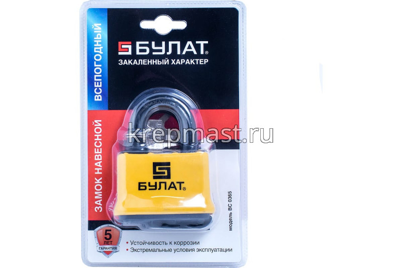 Замок навесной БУЛАТ ВС 0365 водостойкий предназначен для запирания, распределительных щитов, почтовых ящиков, гаражей, складов, подвалов и прочих помещений.