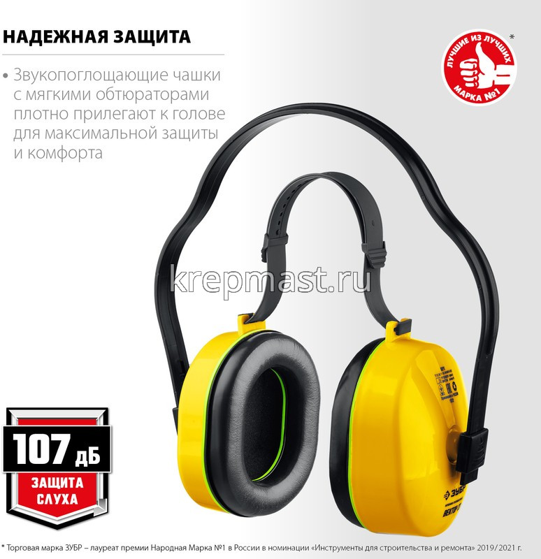 Наушники ЗУБР Вектор-27 защита до 107дБ, с двойным оголовьем в Нижнекамске