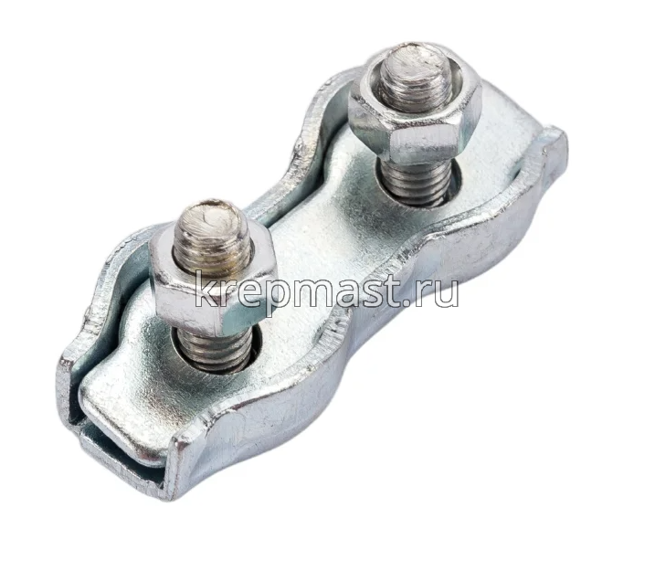 Зажим двойной для троса Duplex, 4 мм необходим для соединения тросов, канатов и веревок. Также с помощью него можно делать петли на концах троса, каната. Зажим имеет две прижимные гайки, что обеспечивает более высокую прочностью сращивания. Монтаж зажима дюплекс для троса следует производить размещая канат или трос на основании зажима, прижимая его пластиной сверху, и затем затягивая гайками всю конструкцию.